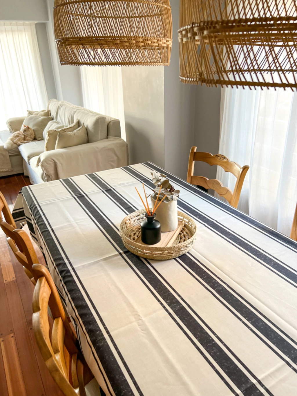 Mantel confeccionado en textil antimachas y resistente a los liquidos. 100% poliester