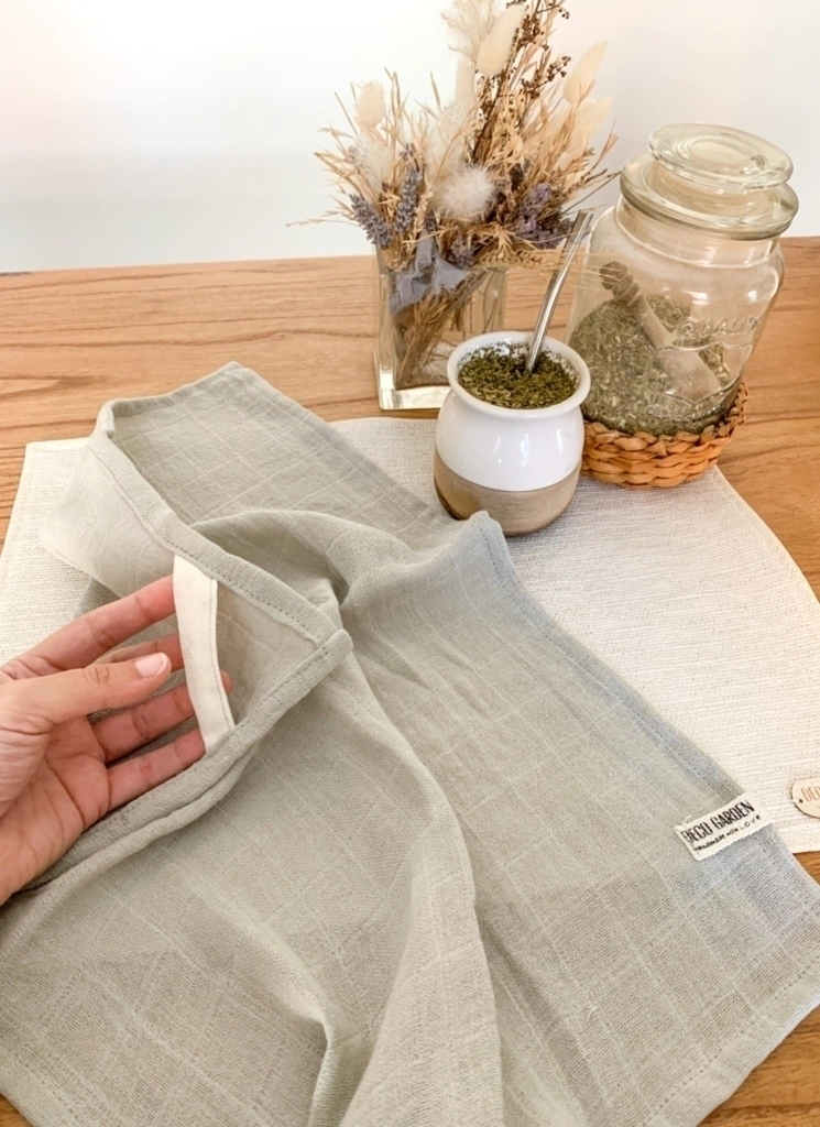El pack incluye 2 repasadores confeccionados en gasa doble 100% algodon.